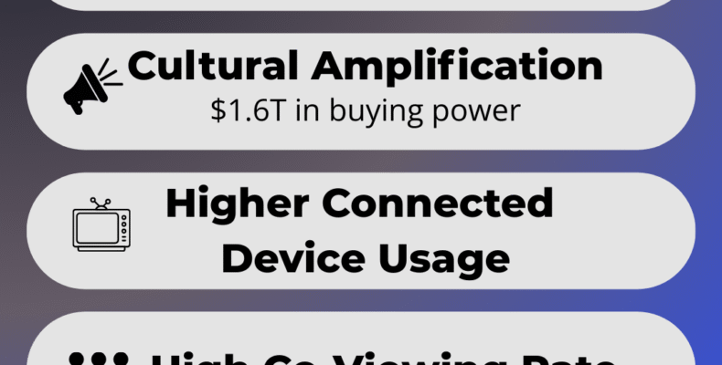 Black audiences drive the culture. With $1.6 trillion in annual buying power and a proven influence across music, video, and social trends, their viewing choices shape what becomes mainstream. They don’t just watch—they post, share, and amplify content far beyond the screen.